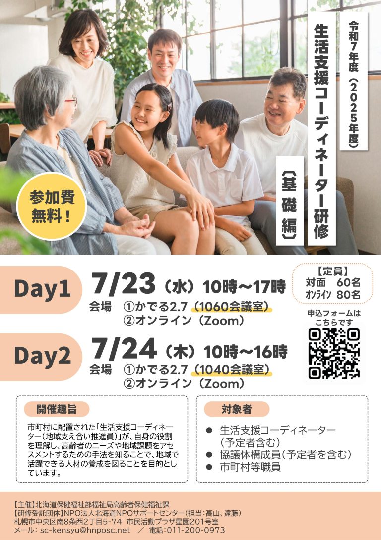 受付開始しました 令和7年度生活支援コーディネーター養成研修 基礎編