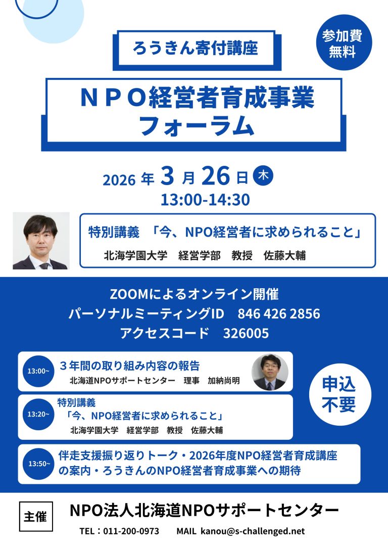 ろうきん寄付講座 NPO経営者育成事業フォーラム 参加費無料・申込不要
