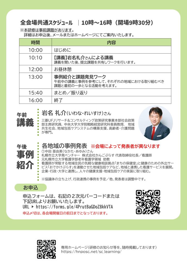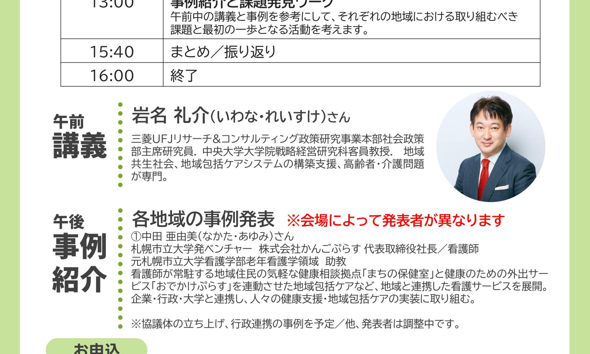 事例発表とグループワークを行います。事例発表は会場により異なりますが、アーカイブで資料や動画を閲覧できます。